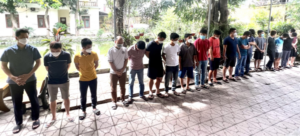 22 đối tượng bị bắt giữ có 7 đối tượng trú tại tỉnh Nghệ An, gồm: Đặng Hùng Dũng (SN 1991), trú tại phòng 1502, chung cư Handico C7, phường Quang Trung, TP Vinh; Nguyễn Toàn Thắng (SN 1975), trú tại xóm 18c, xã Nghi Liên, TP Vinh; Nguyễn Anh Thương (SN 1985), trú tại phường Quang Trung, TP Vinh; Lê Hùng Cường (SN 1984), trú tại phường Hưng Bình, TP Vinh; Lê Khánh Lâm (SN 1989), trú tại phường Lê Lợi, TP Vinh; Lê Ngọc Minh (SN 1990), trú tại phường Đông Vĩnh, TP Vinh. 12 đối tượng trú tại tỉnh Bà Rịa Vũng Tàu, gồm Phan Minh Hoàng (SN 1979), trú tại phường 4; Lê Hải Hùng (SN 1987), trú tại phường 7; Nguyễn Phú Gia (SN 1981); trú tại phường 9; Lê Văn Trực (SN 1985) trú tại phường 9; Đặng Văn Triều (SN 1988), trú tại phường Thắng Nhất; Lê Văn Tuấn (SN 1983), trú tại phường 10; Nguyễn Văn Tuất (SN 1983), trú tại, phường Thắng Nhất; Tăng Hồng Thắng (SN 1974), trú tại phường Thắng Nhất; Nguyễn Văn Minh (SN 1983), trú tại phường 7; Trần Trung Bách (SN 1985), trú tại phường 10; Phan Như Cường (SN 1973); Lê Quang Đạo (SN 1984), trú tại, phường 10, cùng trú tại TP.Vũng Tàu; Vũ Ngọc Diệp (SN 1993), trú tại xã Tân Hòa, TX Phú Mỹ; 3 đối tượng còn tại trú tại tỉnh Đồng Nai gồm Hoàng Ngọc Việt (SN 1981), trú tại TP. Biên Hòa; Trần Anh Tuấn (SN 1981), trú tại phường Trảng Dài, TP Biên Hòa; Trần Văn Lý (SN 1996), trú tại huyện Nhơn Trạch.